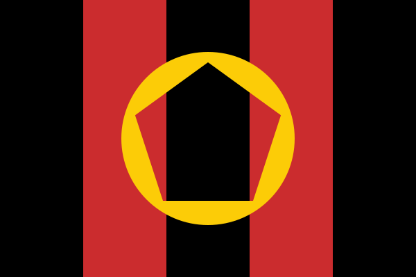 This is directly inspired by the new crest. I took the design from it, recreated both patterns, and set them together. The angle is less steep owing to the 2:3 ratio of these flags instead of the 45 degree slant in the crest.