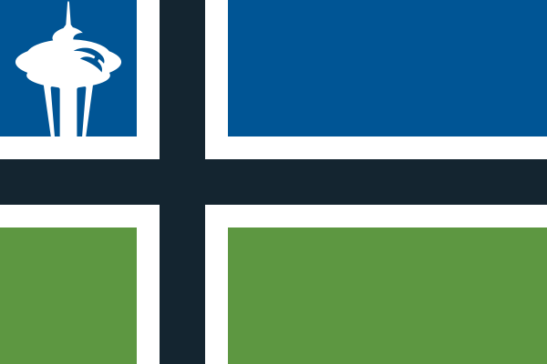 I allowed myself just one nordic cross design, and since I couldn’t think of a better idea for Seattle, they were the lucky winner (thanks to a large Nordic immigrant population!). The colors and Space Needle silhouette are direct from the crest. Distinct enough to be recognizable, yet simple enough for a flag.
